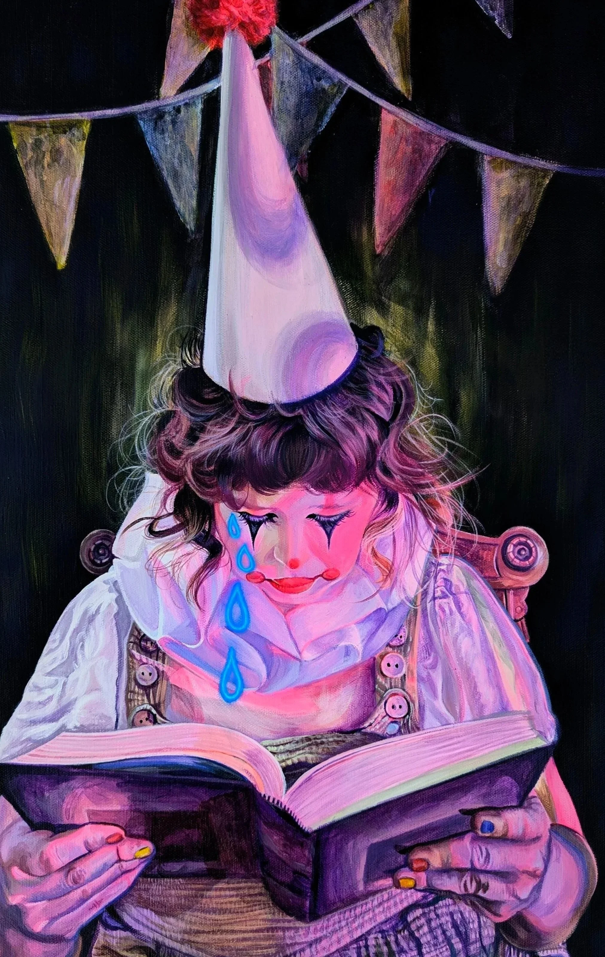 Willow Benjamin (1999) is a contemporary artist specializing in acrylic painting. Creating images that depict surreal and occasional eerie imaginations. Merging reality and idealism with a sense of storytelling, Willow uses her electric neon palettes and balanced brush-strokes to release her inner emotions. Using acrylic paint more like oils, she builds layers with heavy slow dry mixing mediums to blend her paint with a smooth or textured finish. With paint markers, and the help of an airbrush, she creates her mesmerizing signature glowing affects